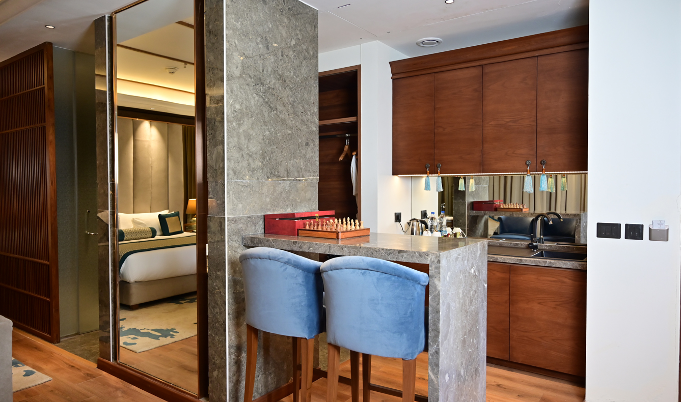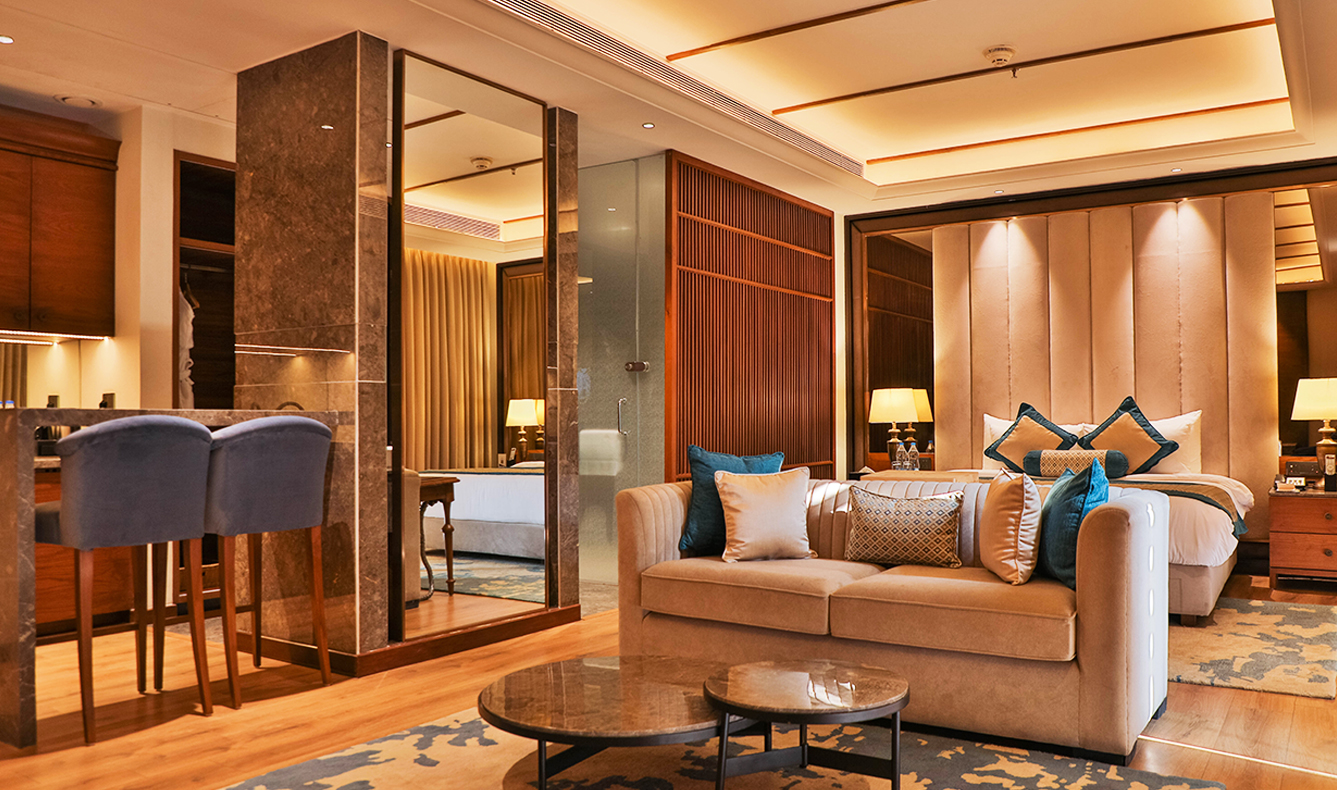 Upgrade to a deluxe room for added space and amenities such as a mini fridge and coffee maker. For a rich experience, we offer separate living areas, plush bedding, and lush decors.